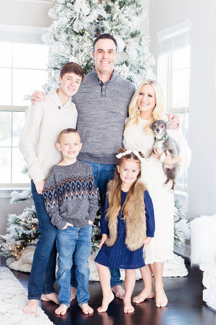 We ended up doing this shoot very close to Christmas, we just couldn’t squeeze it in! I usually have a big theme, idea or look in mind for our one big family photoshoot each year (it’s hard convincing Tim and TJ to do more than that lol) but this year I was so behind. We had a rough year and the last four months or so of 2019 seemed to fly by so quickly. Anywho, I finally figured out a day and time that would work – it was a Sunday morning at 8:00am in our family room. Haha. I’ll take it!