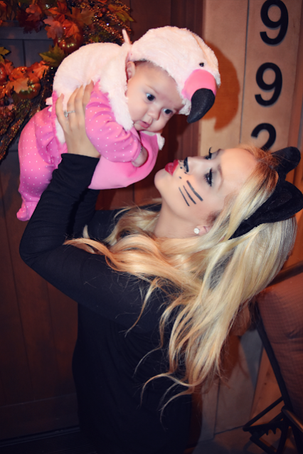 Ryder was not a fan of wearing his panda hood but once we explained that he would get candy if he wore it, he was all in! LOL He didn’t take the hood off until we got him ready for bed. Ha! And Blakely was an angel, as usual. Never complaining about me putting this puffy flamingo costume on her. And never got upset about the hat part of the costume, either! Sweet little girl.