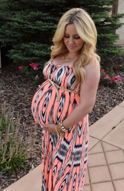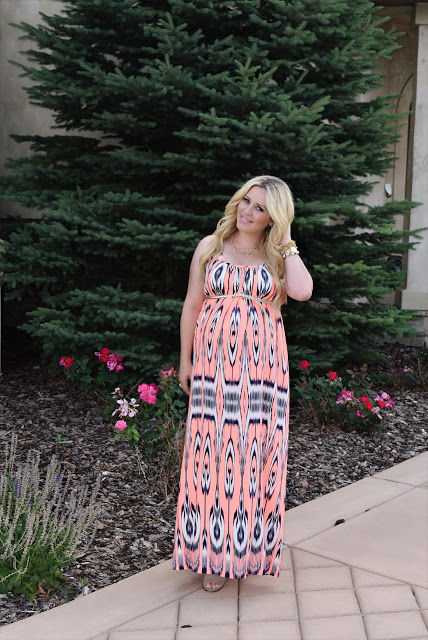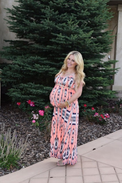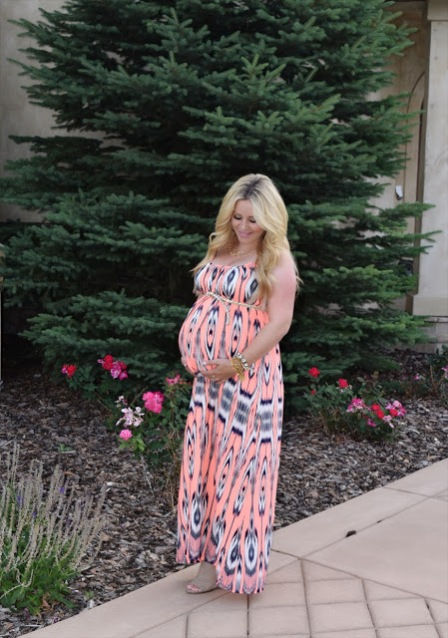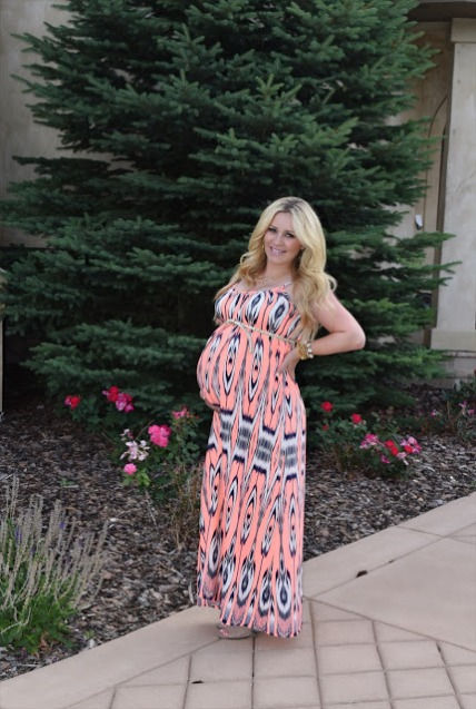 This peach dress from PinkBlush is adorable! It’s so lightweight and we all know that is necessary when you are pregnant in the summer heat. I love dresses lately because they are so easy. I really like that it doesn’t take much thought to get ready when wearing a dress, especially when they have cute patterns like this one! The dress is a statement in itself and you don’t need much else to make the outfit interesting.