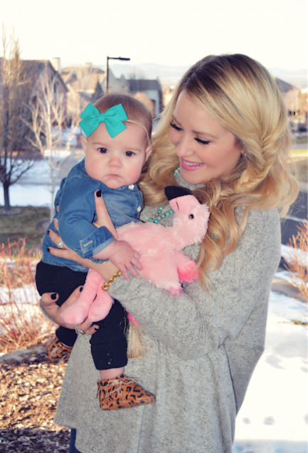 Dressing Blake might be my number 1 hobby these days. HA! I just love these bows from Splendid and those leopard moccs? I die. Adorable! Also, her rolled up chambray. HA! I love it. And her chubby wrist. She just woke up before taking these pictures and I don’t think she was quite ready for her glamour shots yet. 😉 Sweet girl. I love her OH SO MUCH! Her arm around that flamingo?! Stop it. Just too much cuteness!! And Ryder’s not in these pics because he hates it and has way more fun running around playing on the “slippery” snow. I try not to torture him with pictures more than necessary. LOL!